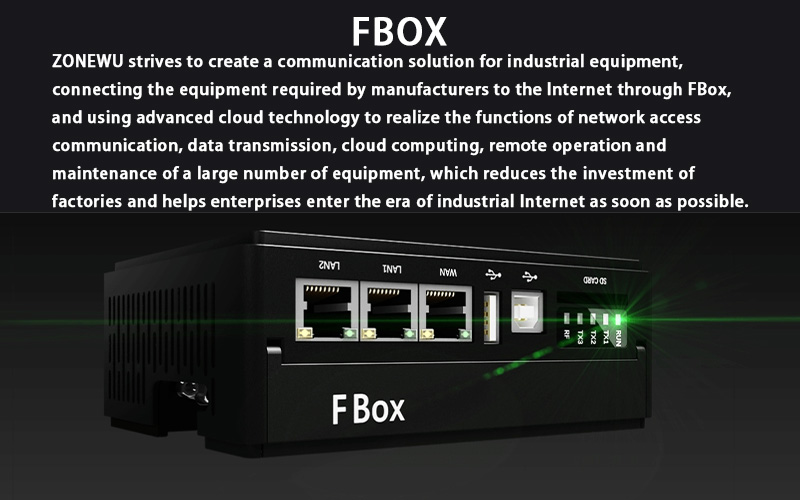 FBOX เป็นอุปกรณ์รับข้อมูลอัจฉริยะภาคสนามในแพลตฟอร์ม IoT สำหรับอุตสาหกรรม ช่วยให้สามารถเก็บรวบรวม ดาวน์โหลด และบำรุงรักษาอุปกรณ์ในสถานที่ได้อย่างสะดวกจากระยะไกล รองรับโปรโตคอลไดรเวอร์อุปกรณ์อุตสาหกรรมกว่า 350 รายการและอินเทอร์เฟซการสื่อสารหลายรูปแบบ ตอบสนองความต้องการด้านเครือข่ายของตัวควบคุมอุตสาหกรรมส่วนใหญ่ ระบบรองรับวิธีการเข้าถึงอินเทอร์เน็ตและเซิร์ฟเวอร์คลาวด์ที่หลากหลาย ฟังก์ชันการกำหนดค่า การวินิจฉัย และการจัดการจากระยะไกลสามารถดำเนินการได้โดยตรงผ่านแพลตฟอร์มการจัดการระยะไกล