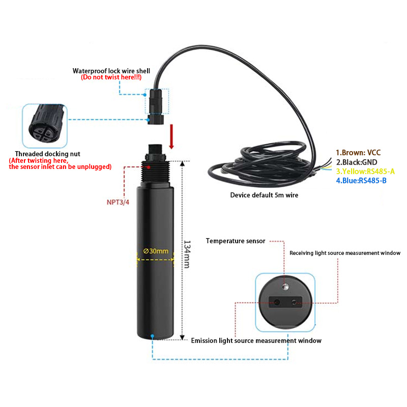 ใช้เทคโนโลยีการตรวจจับการเรืองแสง: ปล่อยแสงกระตุ้นความยาวคลื่นเฉพาะเพื่อกระตุ้นไฟโคไซยานิน (ซึ่งเป็นลักษณะเฉพาะของไซยาโนแบคทีเรีย) ให้ปล่อยแสงเรืองแสงเฉพาะตัว วัดความเข้มของแสงเรืองแสงเพื่อคำนวณความเข้มข้นของไซยาโนแบคทีเรียได้อย่างแม่นยำ พร้อมแยกแยะความแตกต่างจากสาหร่ายชนิดอื่นได้อย่างมีประสิทธิภาพ อัลกอริทึมป้องกันการรบกวนและฟังก์ชันชดเชยอุณหภูมิในตัวช่วยลดความผิดพลาดของข้อมูลที่เกิดจากความขุ่นของน้ำ แสงโดยรอบ และความผันผวนของอุณหภูมิน้ำ การสื่อสาร: เทคโนโลยีเครือข่ายพื้นที่กว้าง LoRaWAN พลังงานต่ำ รองรับการส่งสัญญาณไร้สายระยะไกล (ครอบคลุมหลายกิโลเมตร) สำหรับสถานการณ์กลางแจ้งนอกระบบ ลดต้นทุนการติดตั้ง การป้องกัน: มาตรฐานกันน้ำ IP68 ผลิตจากวัสดุที่ทนทานต่อการกัดกร่อน เหมาะสำหรับการใช้งานใต้น้ำเป็นเวลานาน บางรุ่นมีแปรงทำความสะอาดอัตโนมัติเพื่อป้องกันการเกาะตัวของสาหร่าย