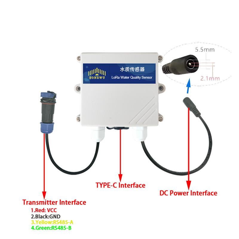 1 YearZONEWU LoRaWAN เซ็นเซอร์คุณภาพน้ำสาหร่ายสีเขียวสีน้ำเงิน